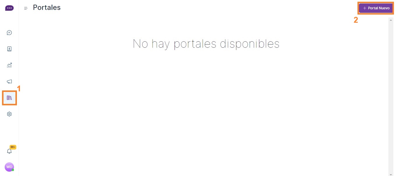 Paso 1. Haga clic en el ícono del Centro de ayuda en la barra lateral y haga clic en el botón “Nuevo portal”.